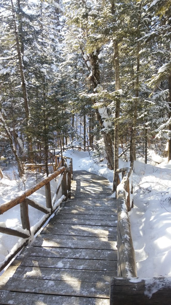 愈走,棧道愈窄,只能讓1.5個人經過。偶爾會有一段路是在兩道雪牆之間走過,沒有扶手,可那兩道牆都高得要擋住風雪,也算是雪中送炭。下山的遊客有時會搭一兩句話,互相說著鼓勵的話。