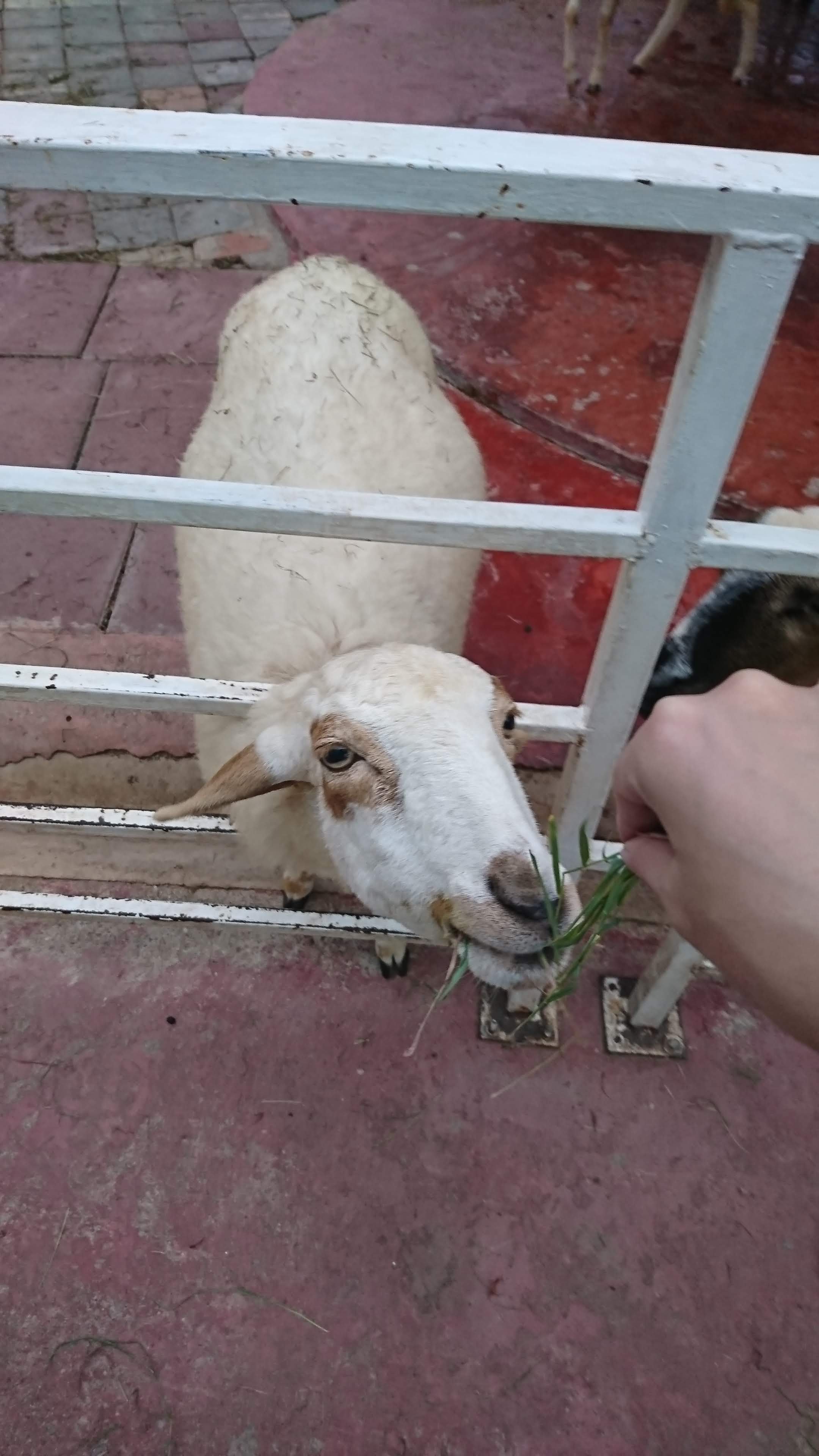 接著我們便到綿羊牧場,入口處可以購買飼料餵羊。欄裡的羊總是在叫,爭相要把頭擠出圍欄,超可愛TTTT餵飼料時,大隻的綿羊總是擠開了較小的羊,滋味地享用著食物,於是我們也特地只餵給小羊XDD