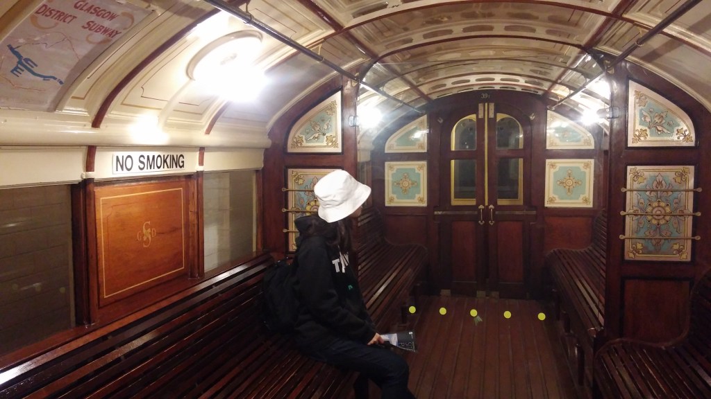 這是世界第三擁展悠久歷史的地鐵,由Strathclyde Partnership for Transport(SPT)一家蘇格蘭著名的交通公司營運。格拉斯哥的地鐵小小的,很可愛。英國人的體格比亞洲人都普遍要高大,他們的腦袋幾乎都要貼到車廂頂了,坐下來也得縮成一團,這個景況也好可愛XDD