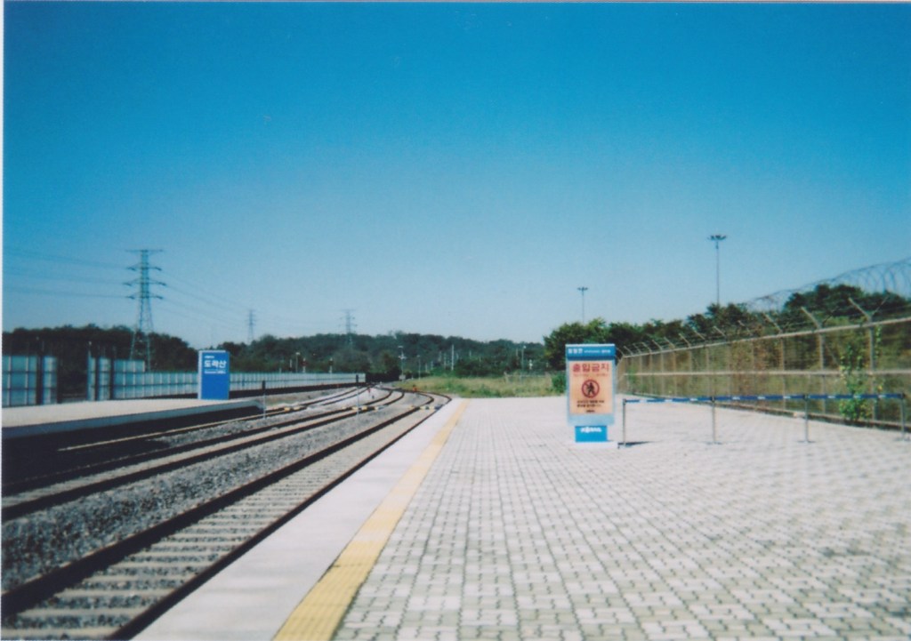最後一站便是都羅山車站,是南韓內最北的火車站。每天也會有一班車,但並不載人,這只是象徵——南北韓再次連結起來的心。在這裡可以買到紀念車票,在車票上可以蓋紀念章,然後憑票進車站月台。興許許多人都不知道可以憑票入月台,月台上沒什麼人,可以瘋狂拍照XDDD