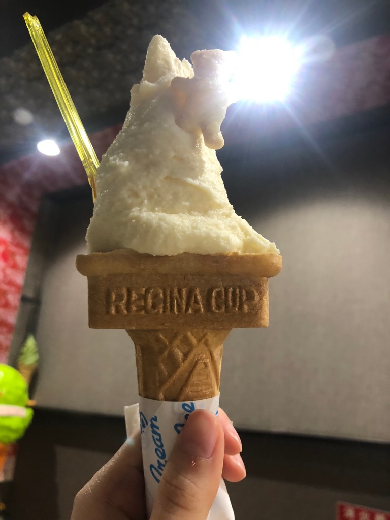 嵯峨豆腐是嵐山其中一樣有名的,所以我們特地點了豆腐味(嵯峨とうふ,¥450)。豆腐味很濃,偏甜。香港很多豆腐雪糕都是偏淡的,這濃濃的豆腐味很讓我們驚喜,我們都一致覺得很好味!上面的熊仔餅乾就是普通的甜甜餅乾,造型加分。