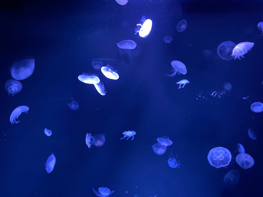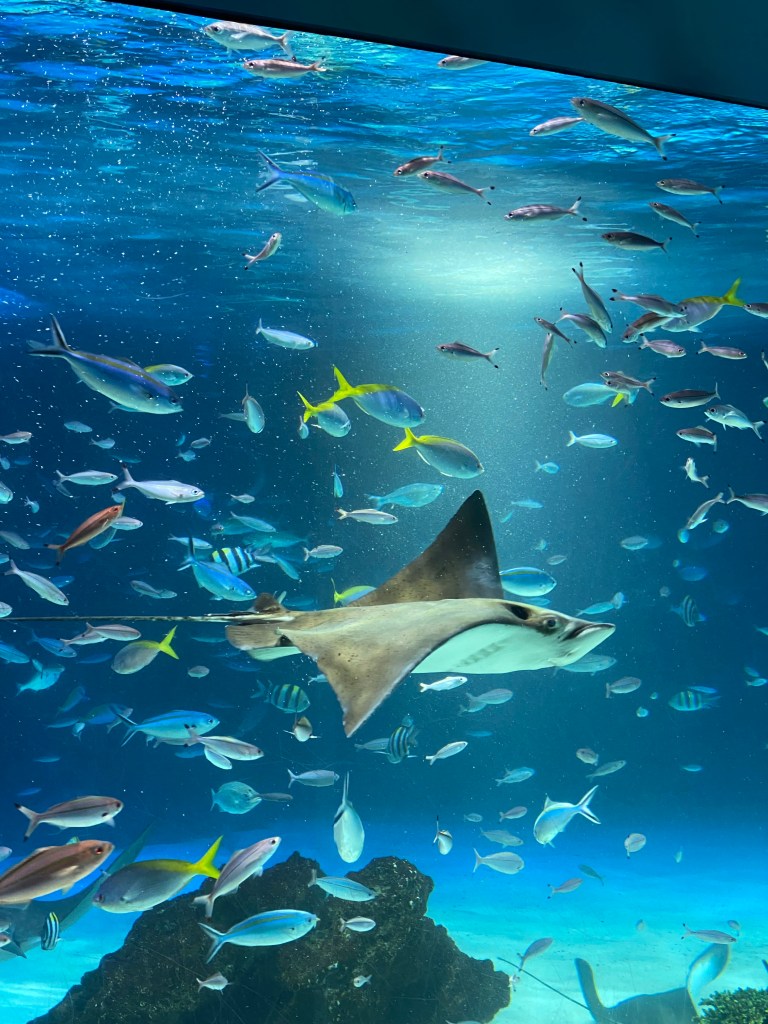 我們是大約11、12點入場,真的剛剛好陸陸續續開始餵食表演。一樓展館剛好有員工潛水餵魚,還會跟觀眾們揮手~同層的水母展館也很喜歡,感覺可以坐下來看一整天。